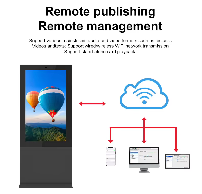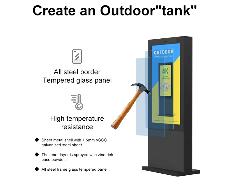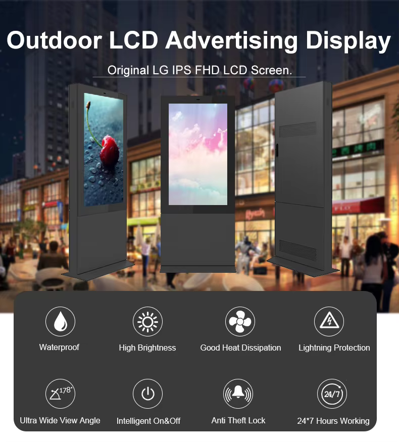 Zewnętrzny kiosk podłogowy o przekątnej od 43 do 86 cali i jasności 2500 nitów 4K Digital Signage